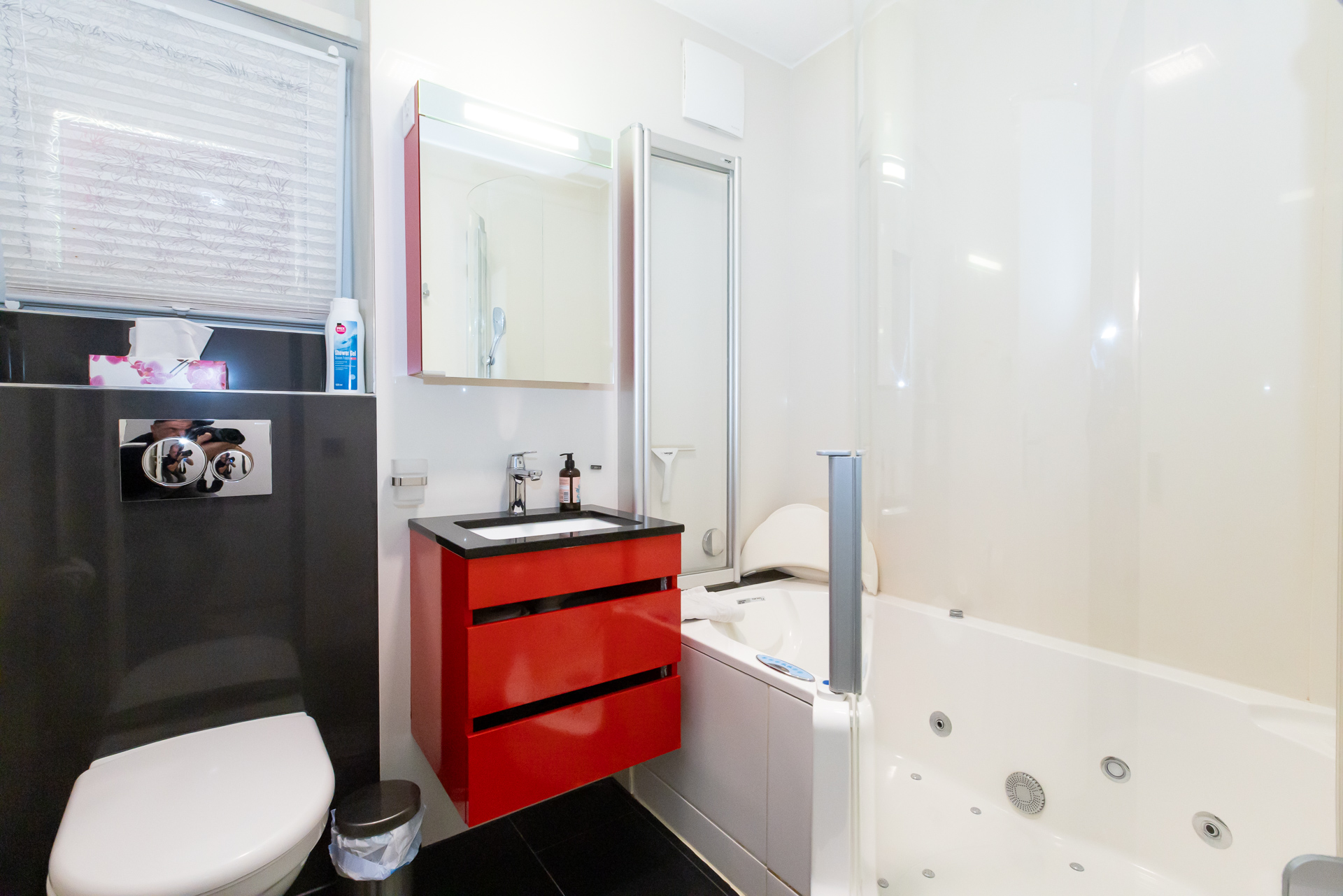 Das Badezimmer ist mit einer Sprudelwanne / Dusche ausgestattet, das passende Badesalz wird zur Verfügung gestellt.
